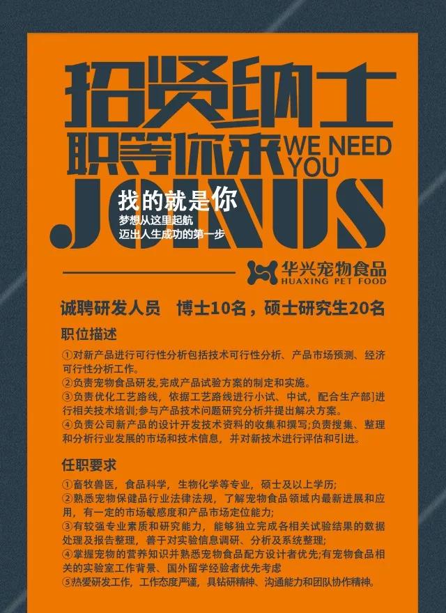 華興寵物食品有限公司,坐落于素有“觀音之鄉(xiāng)、宋璟故里”之稱的河北省南和縣,前身是邢臺華興飼料有限公司,公司的歷史可以追溯到1996年,最初以生產(chǎn)畜禽飼料為主,積累了豐富的動(dòng)物營養(yǎng)研發(fā)成果和生產(chǎn)管理經(jīng)驗(yàn), 2006年成功轉(zhuǎn)型到寵物食品行業(yè),專注于犬糧、貓糧的研發(fā)、生產(chǎn)和銷售。公司秉承為寵物提供營養(yǎng)、健康、安全的食品為己任,建有獨(dú)立的研發(fā)中心和1100余只犬貓的寵物實(shí)驗(yàn)基地,有力支撐了產(chǎn)品的研發(fā)、創(chuàng)新和升級。